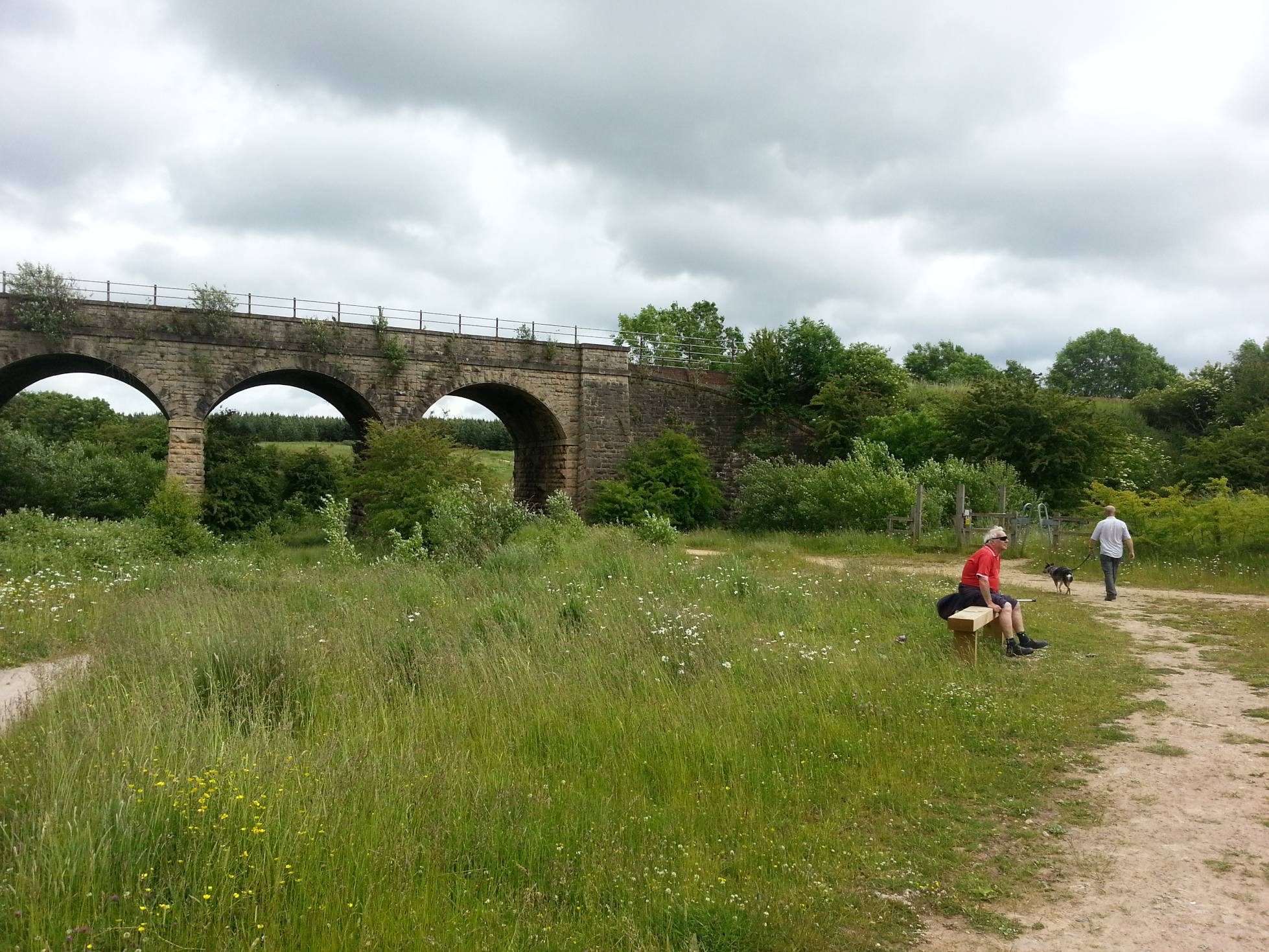 A network of footpaths comprised mainly of non-bonded crushed material. Most are around 1.5 metres wide, but there are narrower trails through wooded areas which are unsurfaced. Paths vary in gradient from flat to 1:10 or steeper. There are a limited number of seating areas at varied intervals throughout the site, most in excess of 500m apart. Access onto site is through access control barriers which permit motorised buggies.